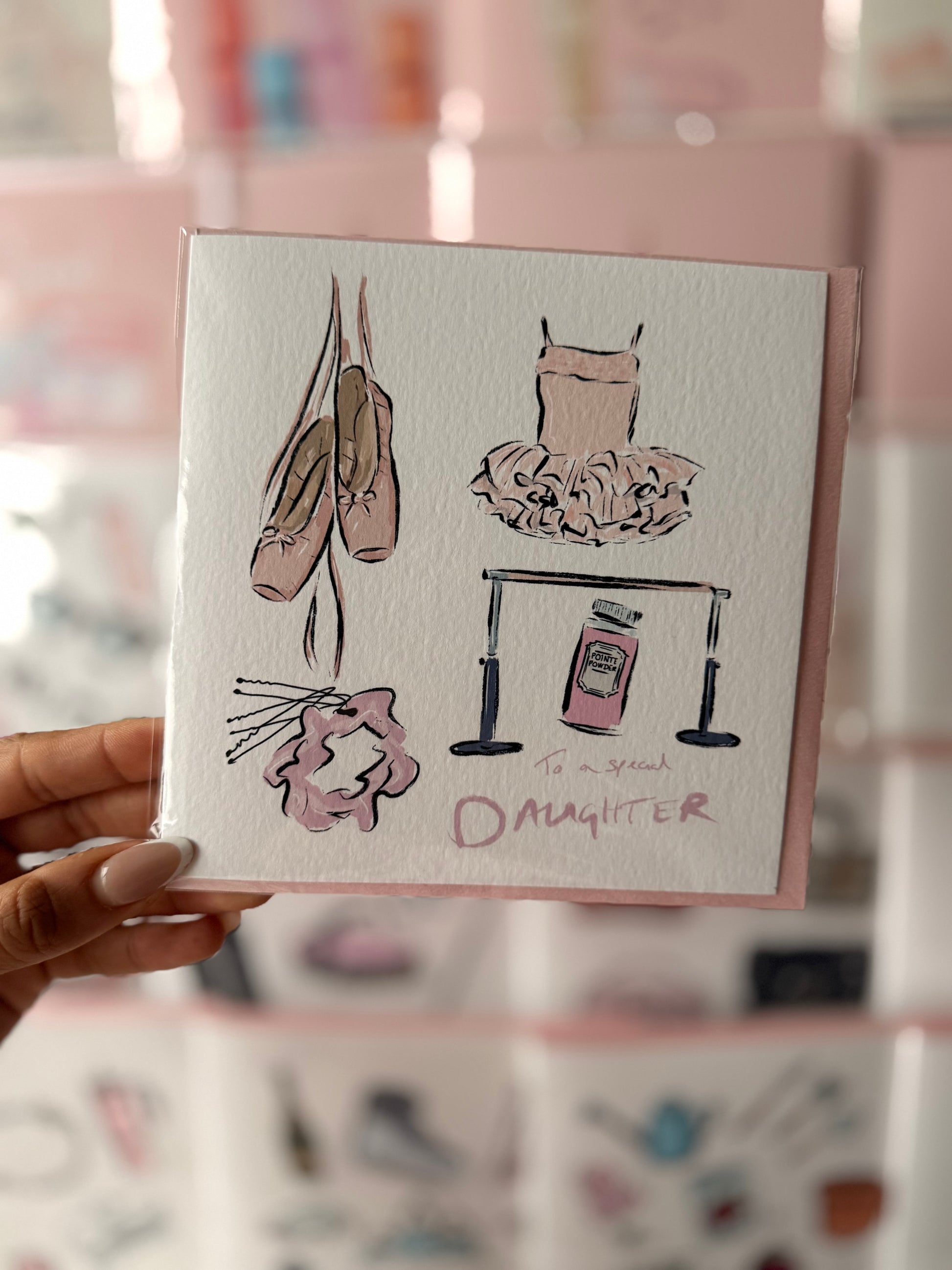 Celebrate the joy of your little ballerina with the Dancing Daughter card! Featuring a graceful ballet design printed on luxurious white card, it comes beautifully paired with a pink pearlescent envelope. Perfect for any occasion, this card captures the essence of your daughter’s passion and elegance!